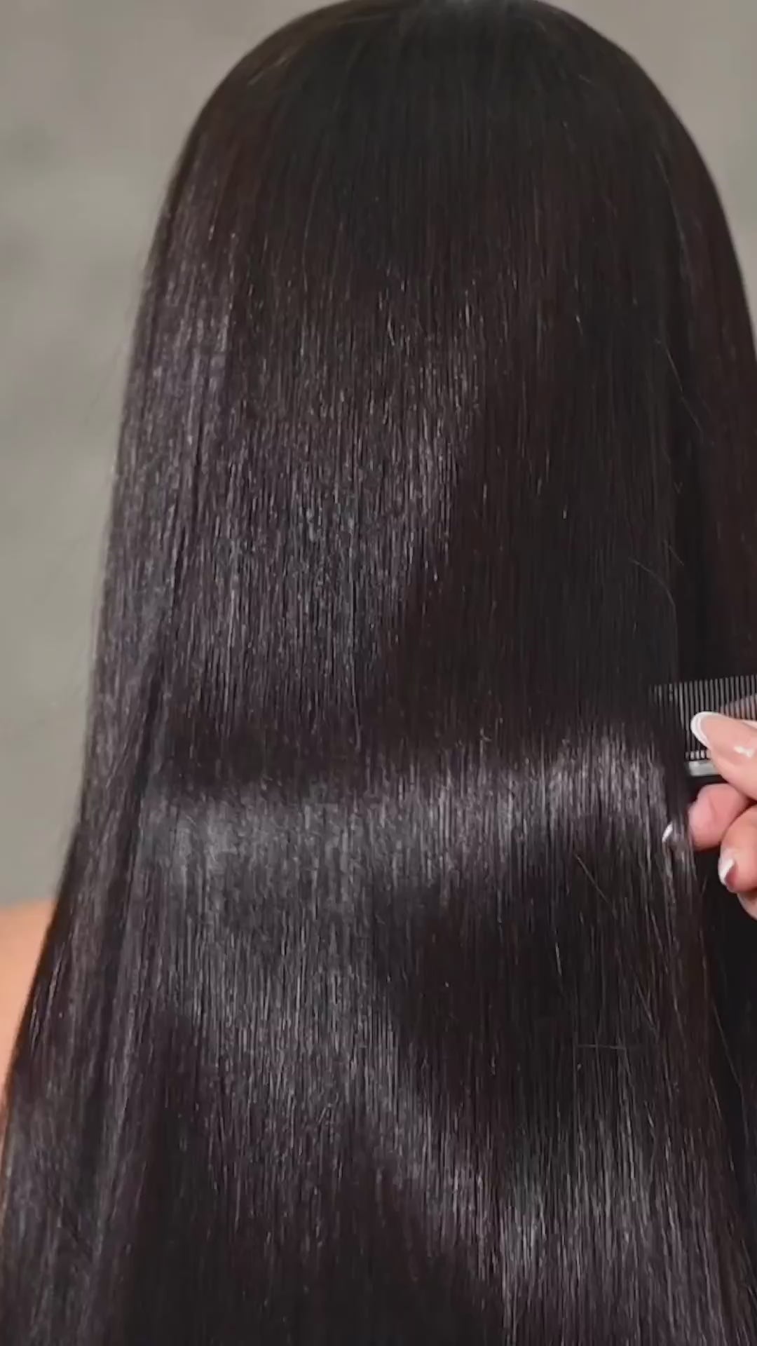 Cabelos perfeitamente lisos, reparados e nutridos.