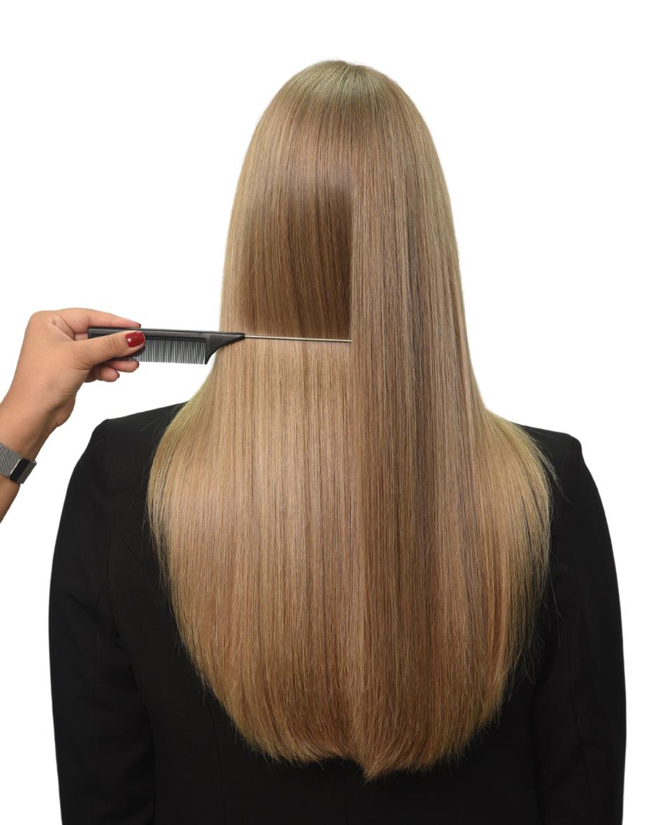 *Essas etapas fornecem uma técnica padrão para alcançar 100% de alisamento capilar para cabelos saudáveis. Ajuste a técnica com base no tipo de cabelo dos seus clientes. Faça um teste de mecha antes de usar. Conduza uma análise capilar para adaptar a técnica conforme necessário. Matricule-se em nosso curso de certificação profissional para perfeição garantida.