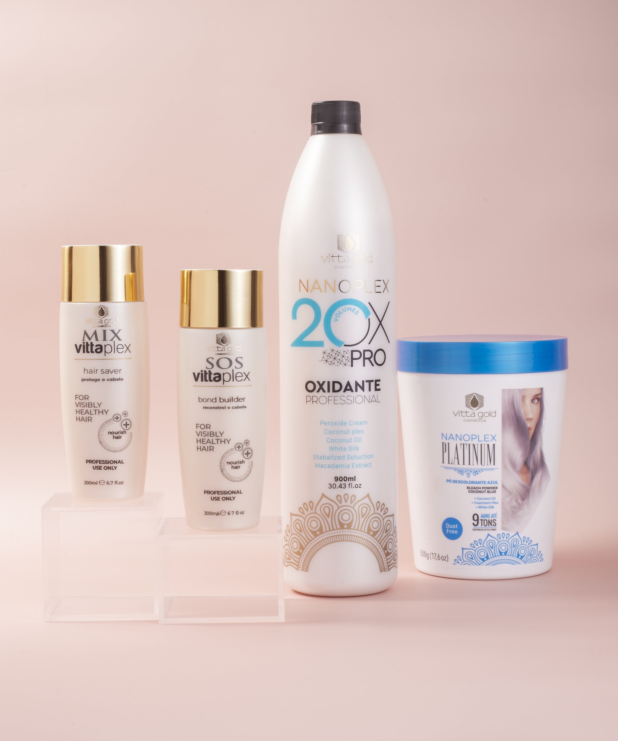 Eleve seu nível em descoloração capilar com Vitta Blond, nossa coleção profissional de alto desempenho. Alcance um clareamento e iluminação precisos com resultados impecáveis. Desde mechas sutis até transformações ousadas, confie em nossa fórmula avançada para looks loiros deslumbrantes.